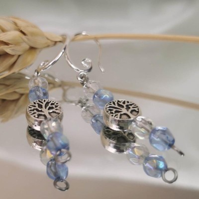 Création boucles d'oreilles en acier inoxydable argenté avec arbre de vie et perles de cristal