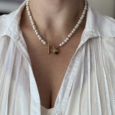 Création collier en acier inoxydable avec perles blanches et coquillage